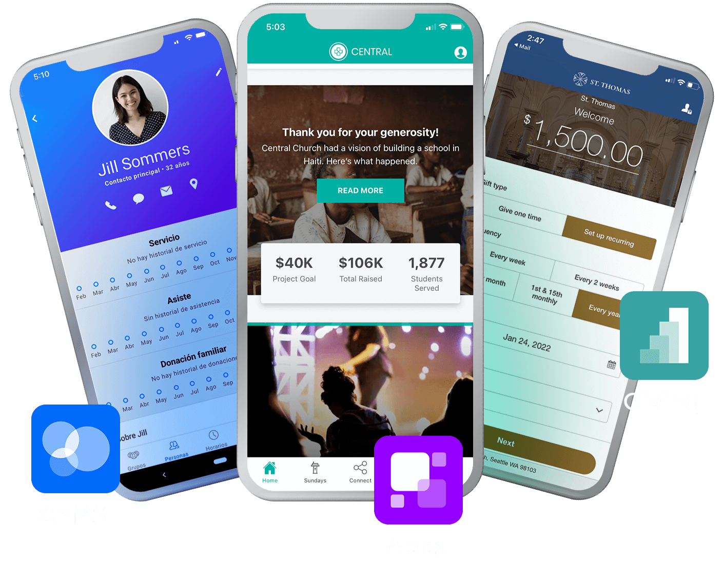 Alinee sus ministerios y llegue a su comunidad con un paquete completo de aplicaciones para iglesias que incluye un sistema de administración, plataforma de donaciones y una aplicación personalizada para móvil.